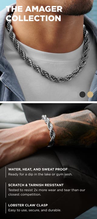 Amager | 10 mm Silver-Tone Stainless Steel Rope Chain NecklaceAmager | 10 mm Gold-Tone Rope Chain NecklaceAmager | 10 mm Gunmetal Stainless Steel Rope Chain Necklace
