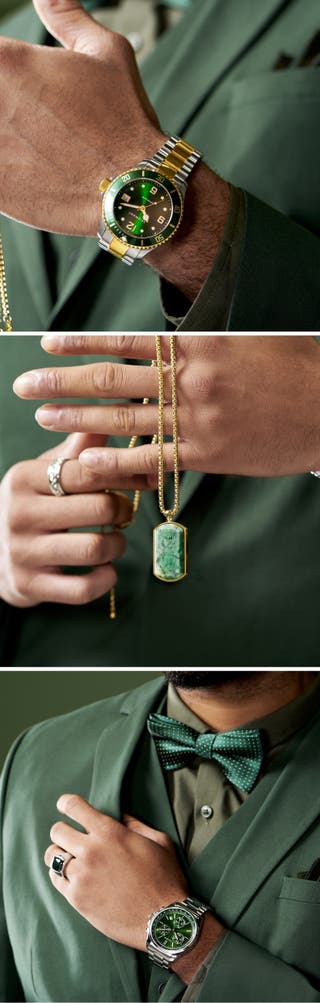 Eric | Green and Silver-tone Stainless Steel Watch with Day and Date