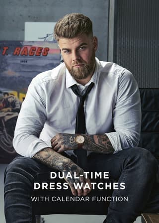 With date, day of the week, a 24-hour dial, and dual-time subdial