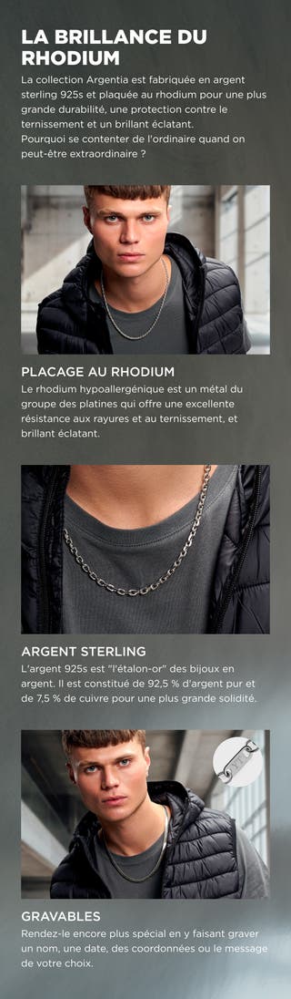 Argentia | 925s | Collier de chaîne en épi et en argent sterling plaqué rhodium de 6 mm