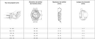 Plusieurs éléments pourront influencer votre choix, tels votre tour de poignet, le diamètre du boîtier, l'épaisseur du boîtier, l'épaisseur du bracelet et le matériau.