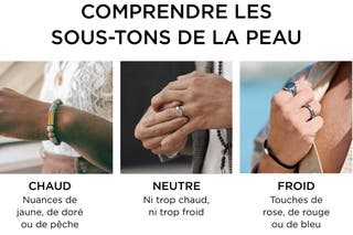 Vous avez besoin de plus d'indices ? Les bijoux peuvent vous être utiles à cet effet. Si l'or vous va à ravir, vous avez probablement un sous-ton chaud. Si l'argent vous sied à merveille, vous avez probablement un sous-ton froid. Les teints de peau neutres s'accordent généralement avec les deux de manière harmonieuse.