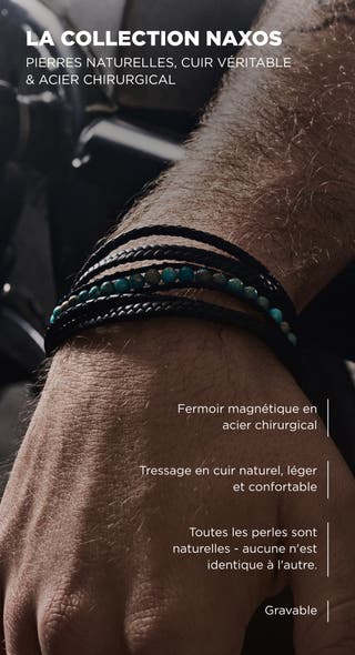 Bracelet Naxos en cuir et pierres de jaspe PicassoBracelet Naxos en cuir et pierre de jaspe PaysageBracelet Naxos en cuir et pierres oeil de tigre rouge Bracelet Naxos en cuir et corail fossile Bracelet Naxos en cuir et perles de turquoise blancheBracelet Naxos en cuir noir et pierres Unakite vertesBracelet Naxos en cuir noir et oeils de tigre vertsBracelet Naxos en cuir noir et pierre obsidienne flocon de neigeBracelet Naxos en cuir noir et pierres de lave noireBracelet Naxos en cuir noir et pierres turquoiseBracelet Naxos en cuir noir et agate noireBracelet Naxos en cuir noir et agate noire dépolieBracelet Naxos en cuir noir et perles de jaspe impérial rougeBracelet Naxos en cuir noir et perles lapis lazuli