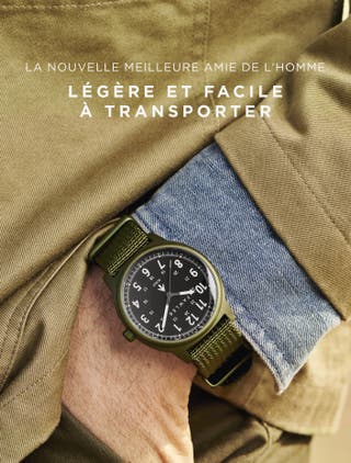 Bracelet NATO, mouvement Seiko, dôme en verre saphir bombé, aiguilles et graduations Super-LumiNova, boîtier léger en aluminium