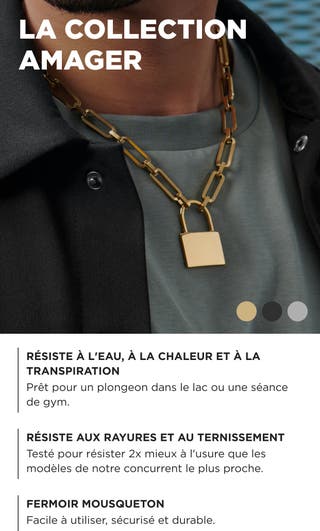 Collier Carter Amager à chaîne couleur bronze gunmetal et pendentif cadenas