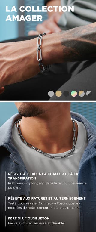 • Confort/Ajustement: Les bords arrondis des maillons reposent à plat sur la peau pour un port confortable toute la journée.