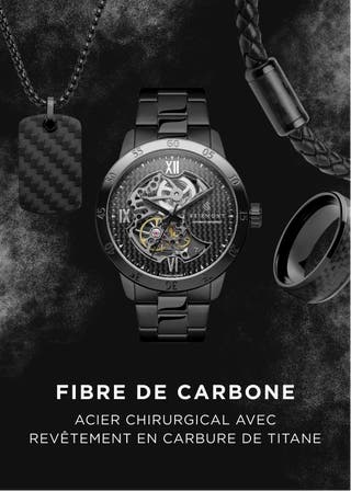 Acier chirurgical, cuir véritable et finition en fibre de carbone. L'acier est revêtu de carbure de titane.