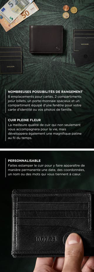 - Peut contenir jusqu'à 20 cartes, espèces et reçus