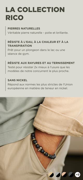 Rico | Bracelet en pierres de lave avec tête de mort en acier inoxydable noir