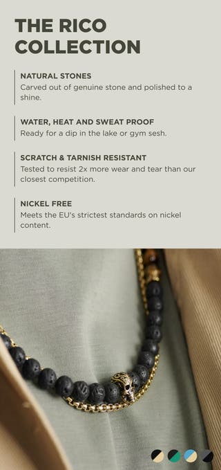 Rico | Silver-Tone Stainless Steel With Lava Rock & Green Tiger's Eye Necklace Set