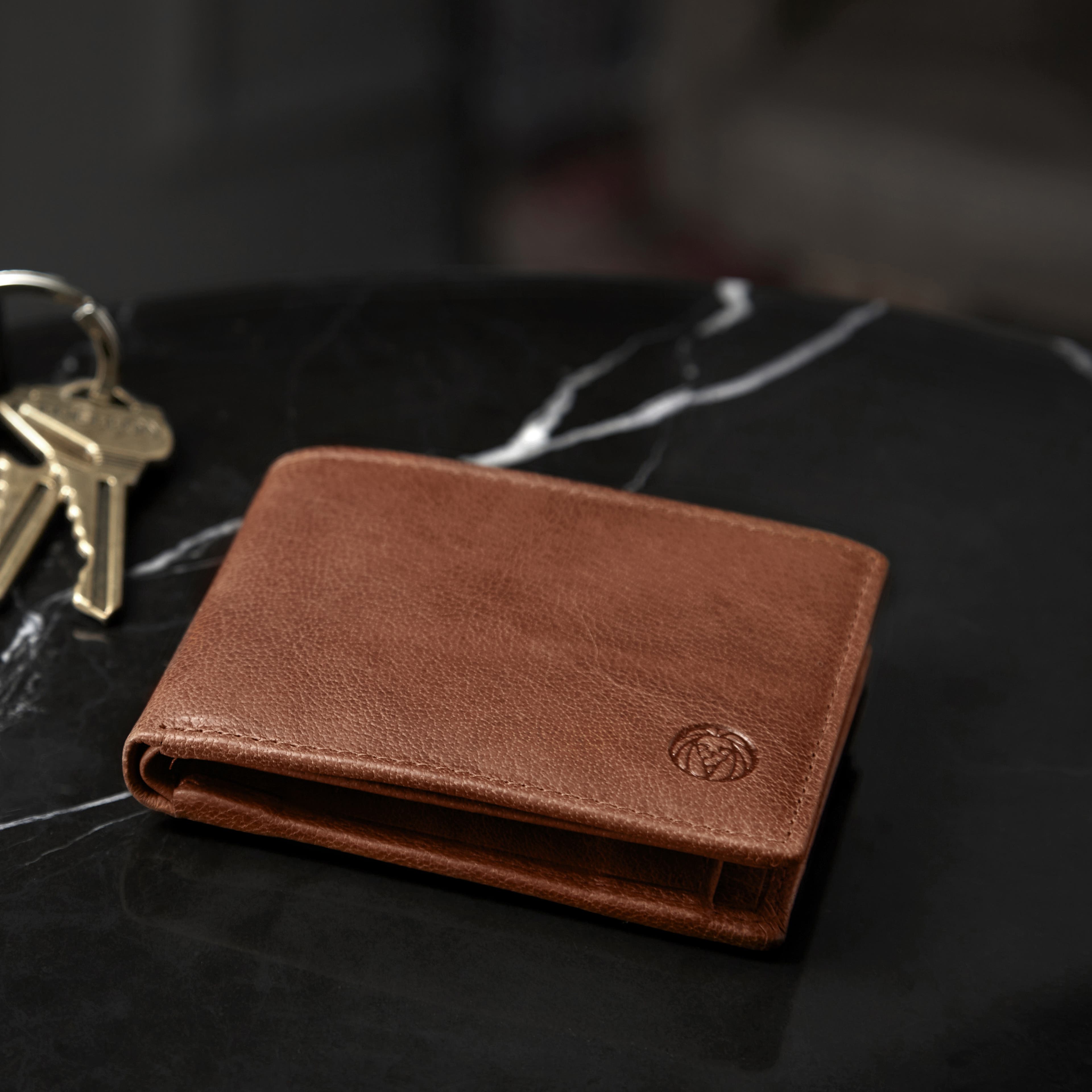 Lincoln | Tan Leather RFID-Blocking Wallet with Keyring